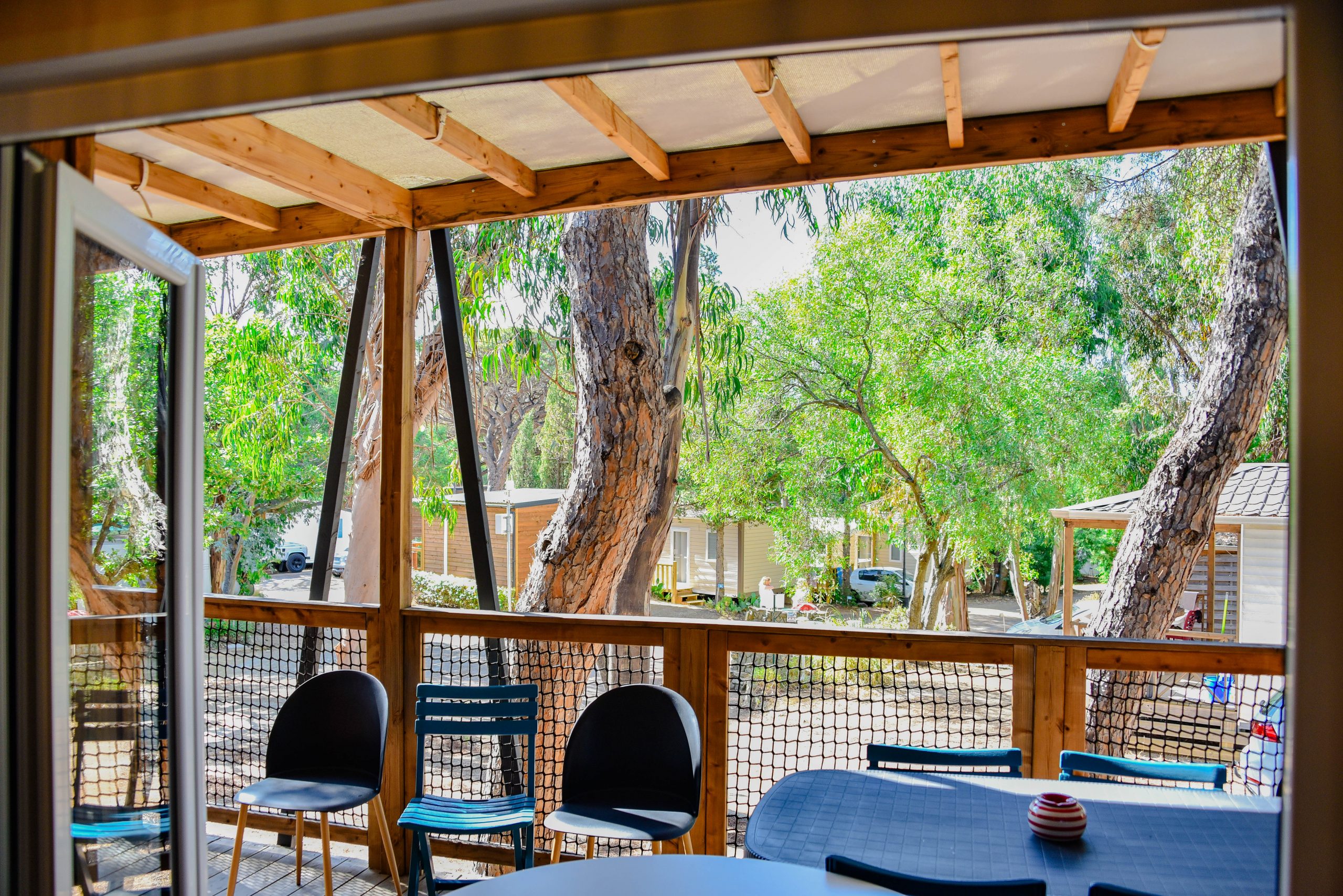 Jolis chalets en bois pour 5 personnes, situés au calme, à l’ombre.